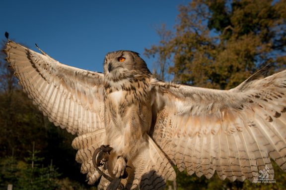 Eulen sind faszinierende Wesen! Ausgestattet mit allem, was einen überlegenen gefiederten Jäger ausmacht: leistungsfähigste Augen, hochempfindliches Gehör, weichstes Gefieder für den lautlosen Flug. Erleben Sie all das und mehr in der persönlichen Begegnung mit unseren trainierten Eulen. Fleckenuhu und Schleiereule schätzen Ihre Gesellschaft und nehmen gerne auf Ihrer Hand Platz, wenn wir durch den Wald spazieren. Lena, unser großer sibirischer Uhu, beeindruckt durch ihre Spannweite von 2,20 m und ihre 4 kg Gewicht - was für ein tolles Fotomotiv! Mit Maru, unserem afrikanischem Milchuhu gehen wir auf einen Eulenwalk - er ist unser bester Flieger. An- und Abflüge von Ihrer Hand, auf Ruf aus dem Nichts zurückkehren und bei Ihnen Futter abholen, Maru ist nicht nur ein Schätzchen, er hat auch absoluten Spaß daran, diesen Ausflug mit Ihnen gemeinsam zu genießen.