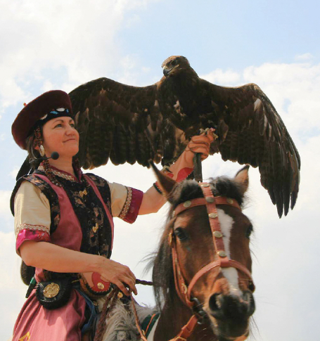 Bis zu 700 Falkner haben das legendäre Heer von Dschingis Khan begleitet und mit Nahrung versorgt. Die Jagd mit dem Adler auf Fuchs und Wolf gehört zu den großartigsten Naturschauspielen der Welt. Die Familien der “Bjerkutchi”, die seit Jahrtausenden mit ihren Adlern leben und jagen, haben ihr Wissen um die Falknerei niemals aufgeschrieben. Es wird seit 4000 Jahren innerhalb der Familien weitergegeben. In unserer Show begegnen Sie dem weißen Gerfalken und dem Steppenadler bei der Jagd auf Beuteersatz. Windhunde und authentisch gewandete Akteure sowie unser Falknerlager mit original Requisiten vervollständigen dieses Angebot. Sie suchen das Exklusive: berittenen Falkner zeigen den Gebrauch von Speer und Reiterbogen und lassen ihre schnellen Pferde mit den Windhunden laufen. Die Kombination von Adler und Pferd erfordert viel Training und wird daher nur selten gezeigt - eine sehr außergewöhnliche Darbietung. Auch mit Kamelen sind unsere Greifvögel vertraut, auf Wunsch können wir unsere Shows entsprechend ergänzen.