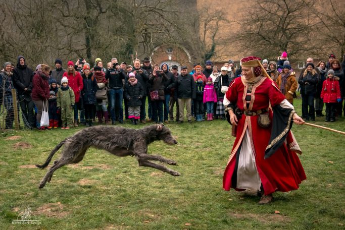 Windhunde - an den meisten Herrscherhäusern dieser Welt zu Hause stellen sie das zweitschnellste Landraubtier nach dem Geparden. Darum besteht die Vorstellung der beiden großen Windhundarten schottischer Hirschhund und russischer Barsoi aus jeder Menge Action und Geschwindigkeit. Die Hunde arbeiten während der Show frei und jagen auf Beuteersatz. Natürlich kommen Spaß und Infotainment dabei nicht zu kurz. Von unseren Besuchern immer sehnlichst erwartet: Die anschließende Möglichkeit zum direkten Kontakt mit unseren Königshunden. Die thematisch passende Ausstattung macht diese Vorführung zu einer hervorragenden Ergänzung oder auch zu einem eigenen Programmpunkt für unsere Ganztagesbuchungen.